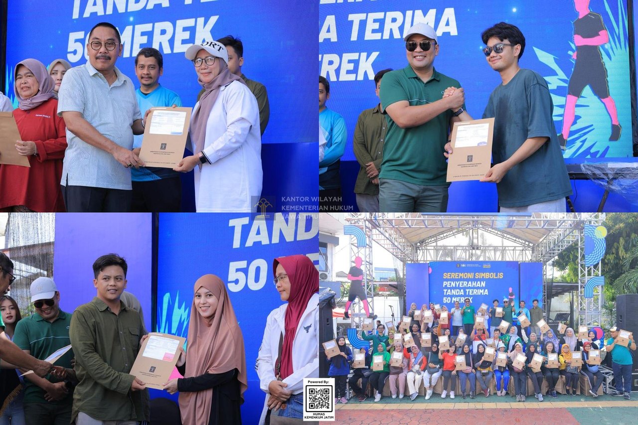 Sebanyak 50 pelaku usaha menerima penyerahan simbolis tanda terima pendaftaran merek. Ini langkah konkret dalam memberikan perlindungan hukum terhadap usaha mereka.