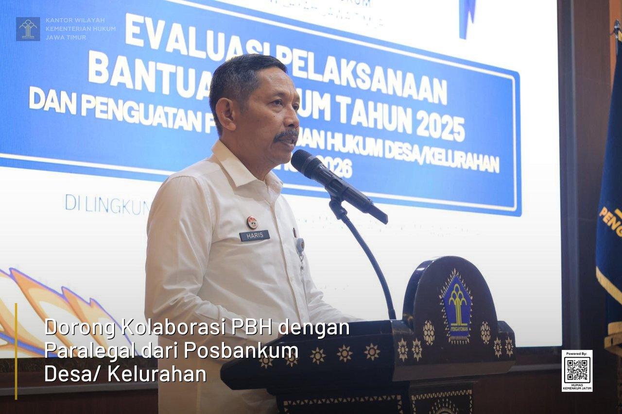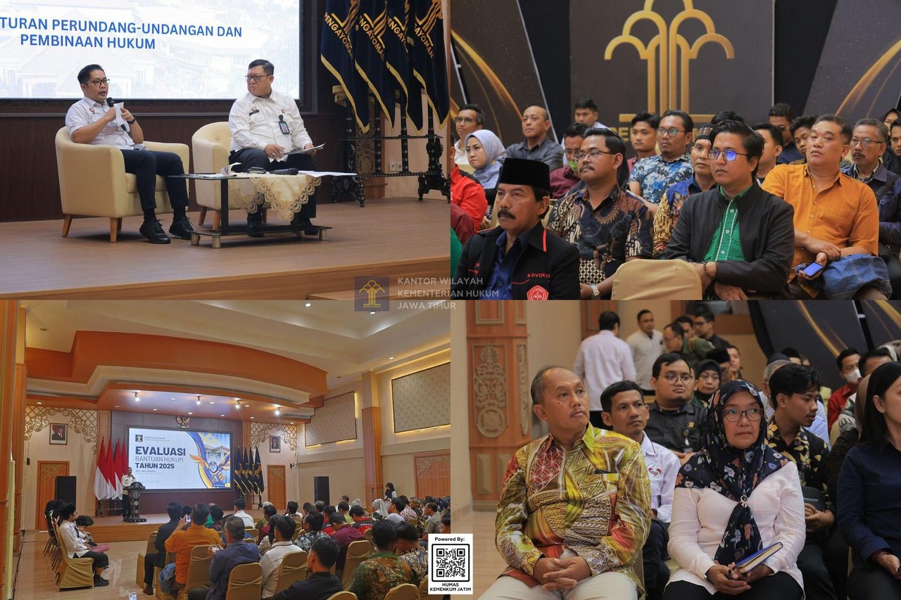 SURABAYA (25/02/2026) – Kantor Wilayah Kementerian Hukum Jawa Timur (Kanwil Kemenkum Jatim) menggelar evaluasi besar-besaran terhadap pelaksanaan bantuan hukum tahun anggaran 2025 di Surabaya, Rabu (25/2). Langkah ini dilakukan untuk memastikan akses keadilan bagi masyarakat miskin di Jawa Timur berjalan optimal dan tepat sasaran.