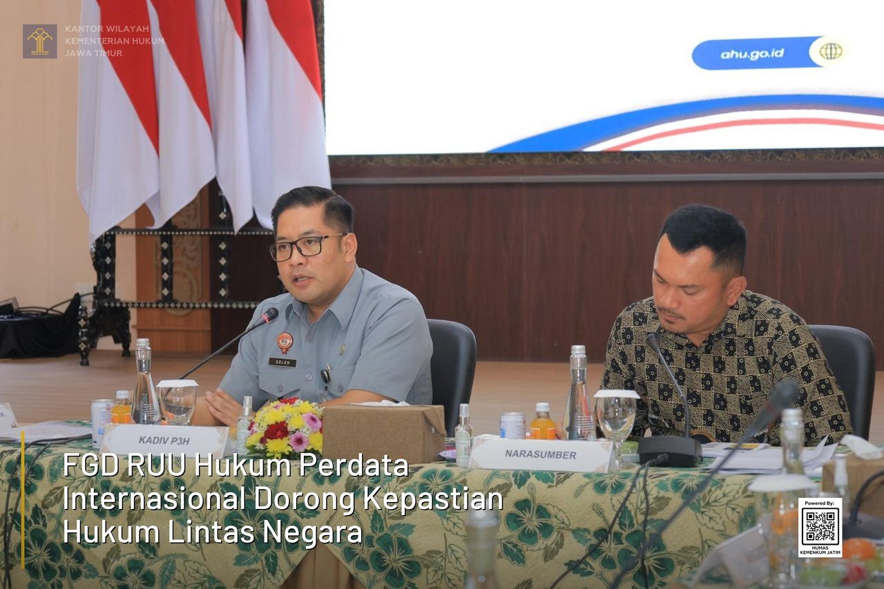 Kakanwil Kemenkum Jatim Haris Sukamto menegaskan bahwa penyusunan RUU ini merupakan langkah strategis dalam memperkuat sistem hukum nasional di tengah arus globalisasi.