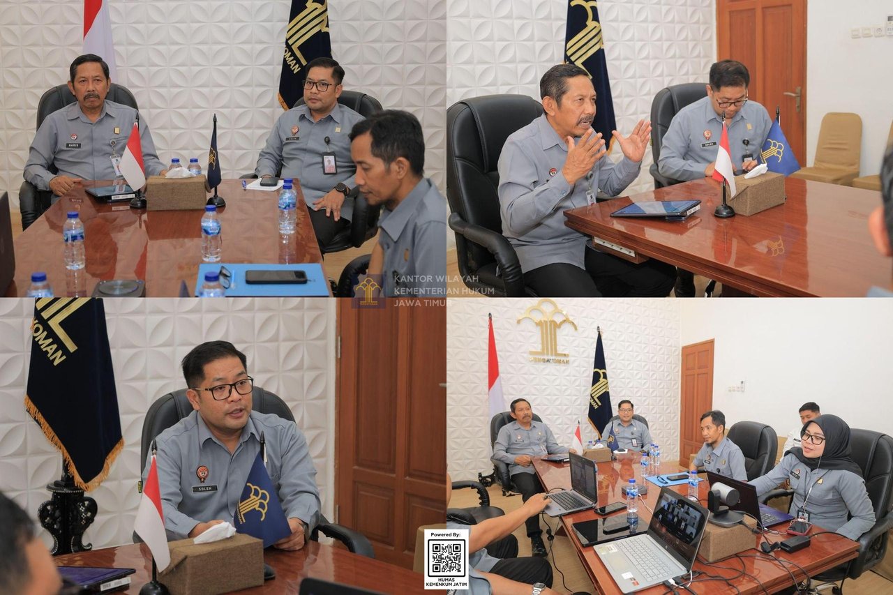Kegiatan yang dilaksanakan secara daring melalui Zoom Meeting ini dihadiri langsung oleh Kepala Kantor Wilayah Kementerian Hukum Jawa Timur Haris Sukamto, Kepala Divisi Peraturan Perundang-Undangan dan Pembinaan Hukum Soleh Joko Sutopo, serta tim penyuluh hukum. Sejumlah pemangku kepentingan turut bergabung secara virtual, di antaranya perwakilan Pemerintah Provinsi Jawa Timur, Badan Narkotika Nasional Provinsi Jawa Timur, serta perangkat daerah kabupaten/kota.