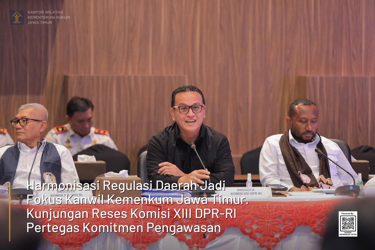Harmonisasi Regulasi Daerah Jadi Fokus Kanwil Kemenkum Jawa Timur. Kunjungan Reses Komisi XIII DPR-RI Pertegas Komitmen Pengawasan
