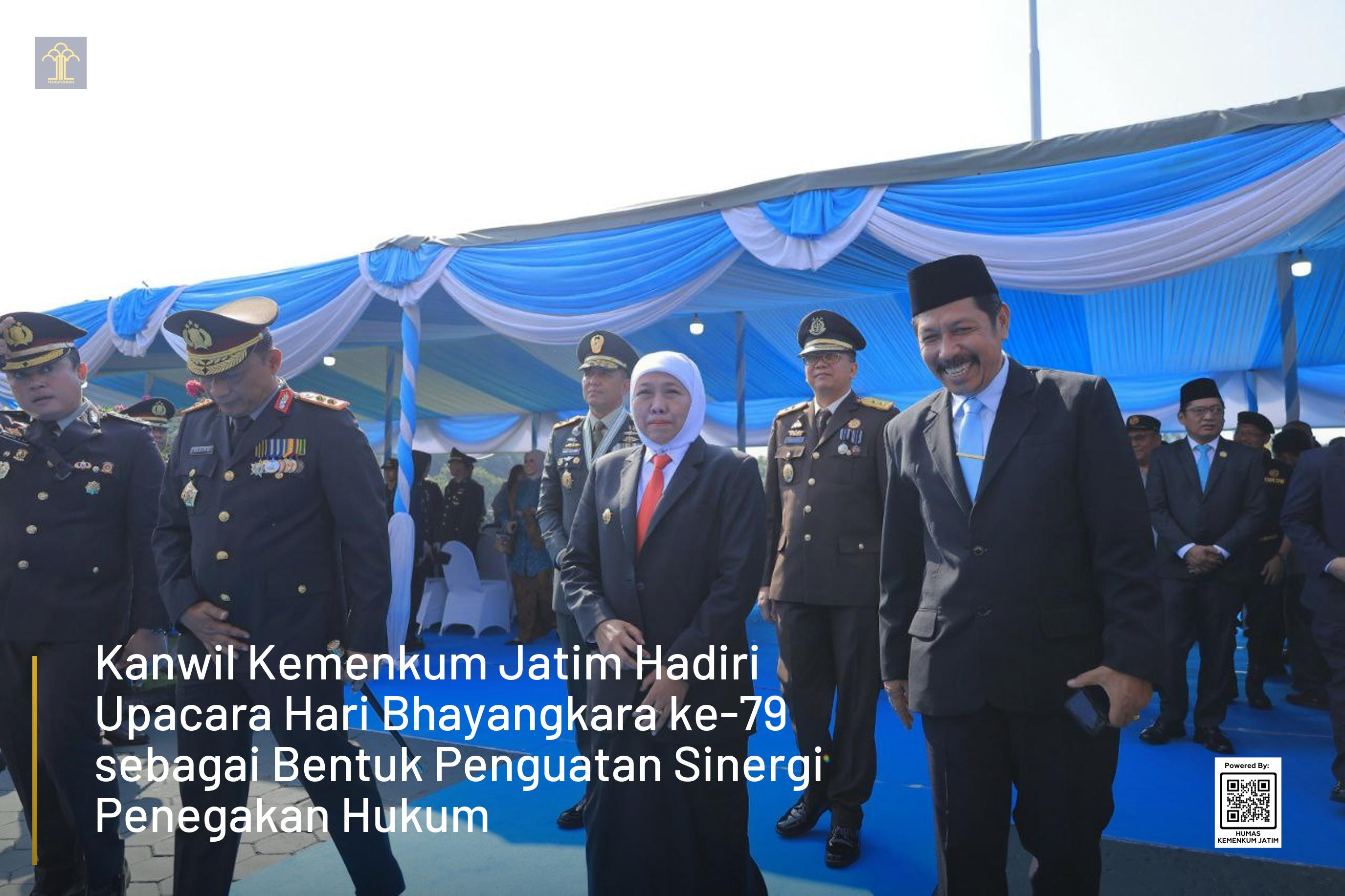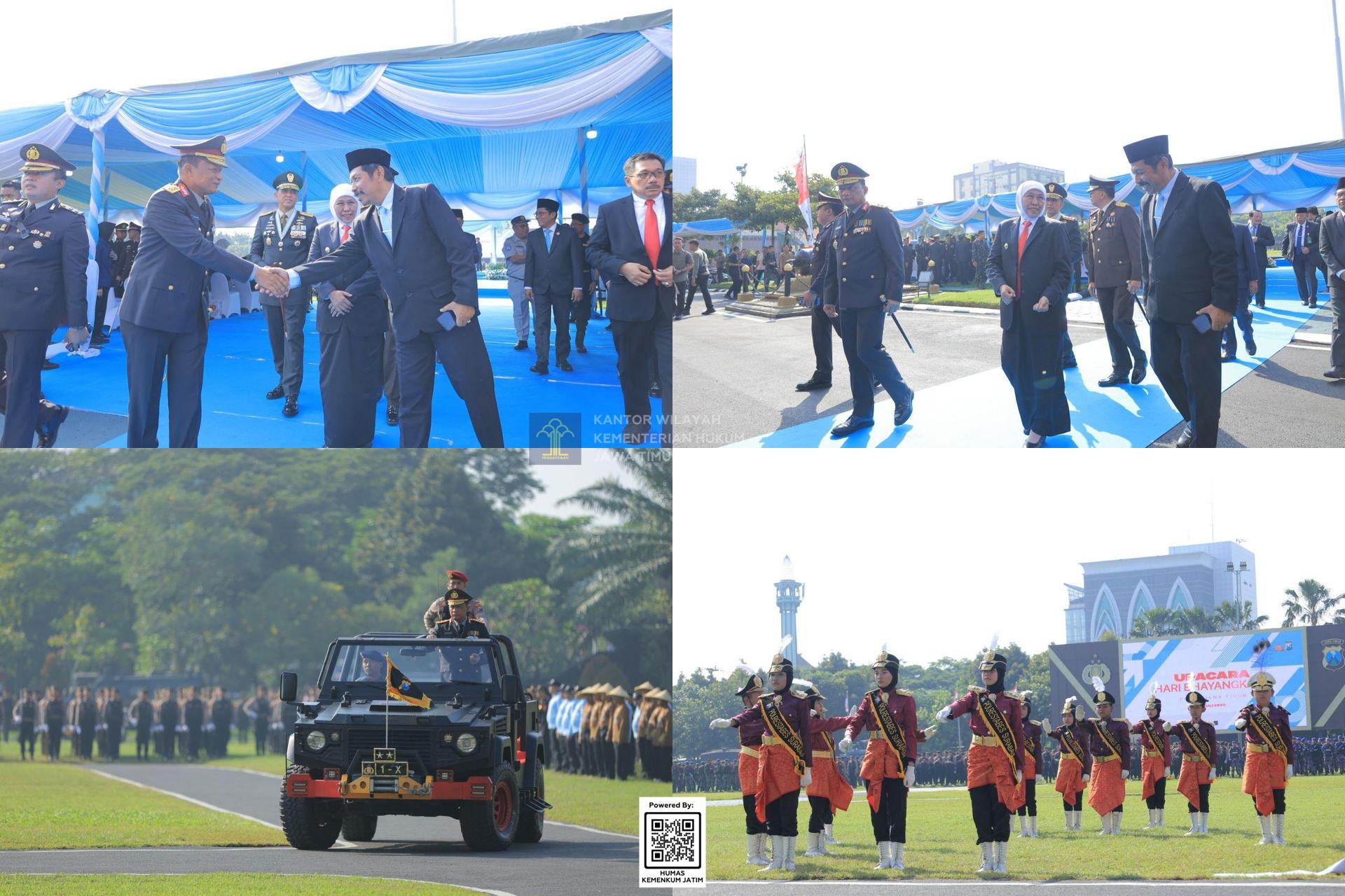 Kanwil Kemenkum Jatim Hadiri Upacara Hari Bhayangkara ke-79 sebagai Bentuk Penguatan Sinergi Penegakan Hukum