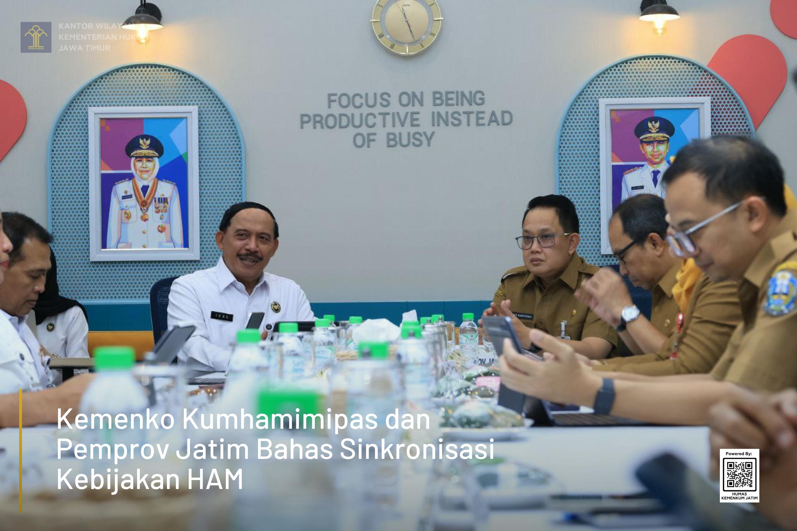 Pertemuan berlangsung di Ruang Rapat Sekretariat Daerah Provinsi Jawa Timur dipimpin oleh Deputi Koordinasi HAM Kemenko Kumham Imipas, Ibnu Chuldun, rombongan diterima langsung oleh Sekretaris Daerah Provinsi Jawa Timur, Adhy Karyono, bersama jajaran perangkat daerah terkait. Dalam pertemuan tersebut, berbagai isu strategis dan capaian HAM di Jawa Timur menjadi fokus pembahasan.