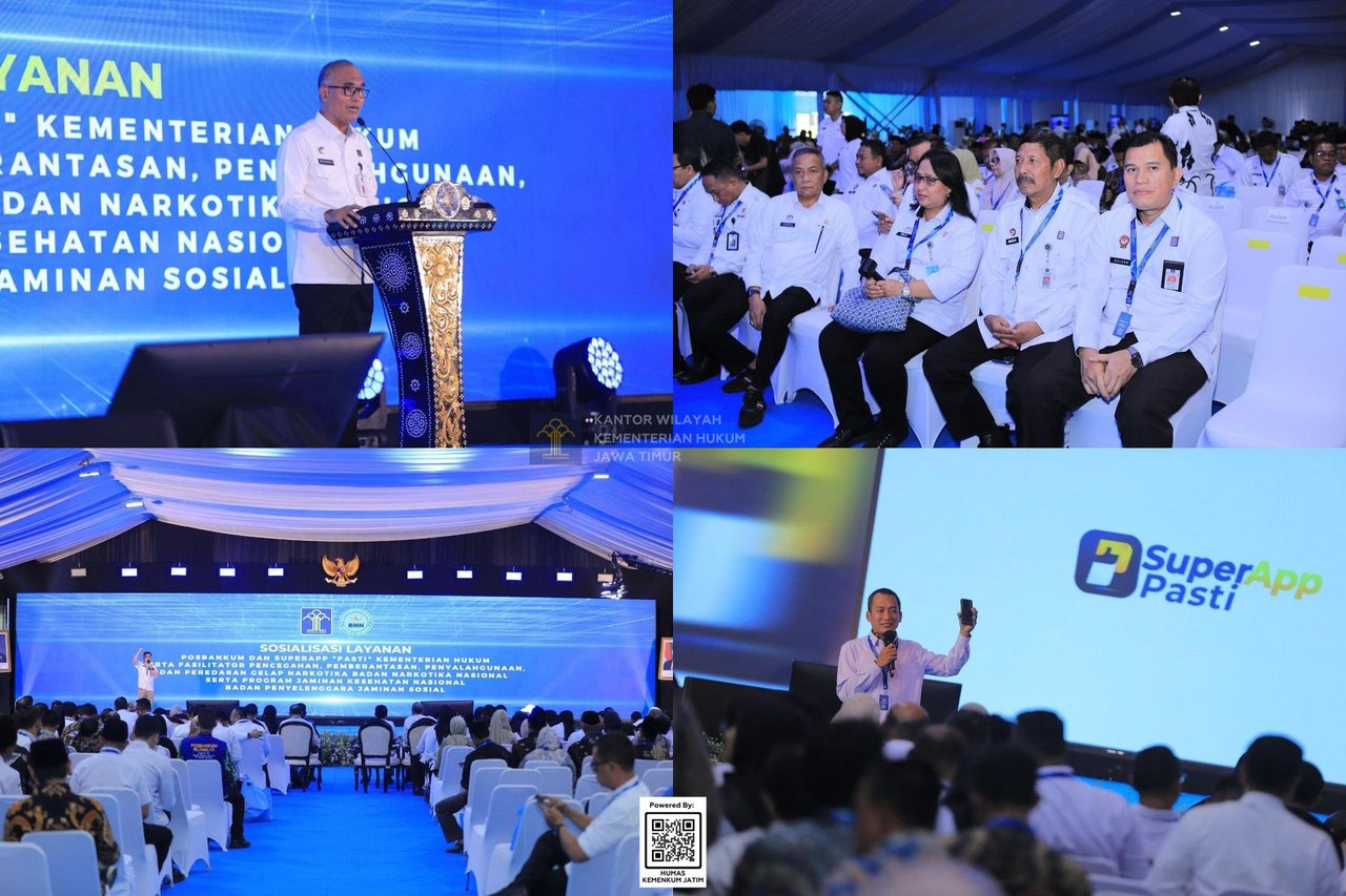 Kepala Kantor Wilayah Kementerian Hukum Jawa Timur, Haris Sukamto, yang hadir bersama jajaran, menegaskan kesiapan pihaknya dalam mendukung implementasi program prioritas tersebut di wilayah Jawa Timur.
