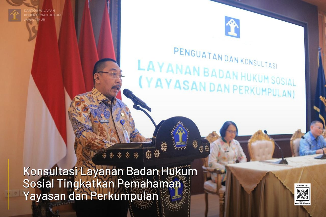 Sementara itu, pada kesempatan yang lain Kakanwil Kemenkum Jatim Haris Sukamto menyampaikan bahwa layanan badan hukum sosial memiliki peran penting dalam memberikan kepastian hukum bagi masyarakat.