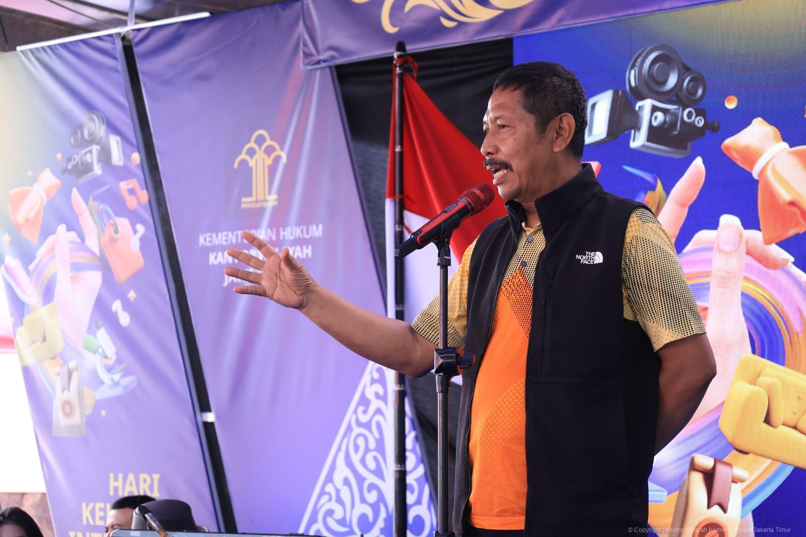 Dalam sambutannya, Haris Sukamto menegaskan bahwa pelindungan kekayaan intelektual, khususnya merek dagang, menjadi aspek penting dalam mendorong pertumbuhan usaha kecil dan menengah. Menurutnya, di era persaingan global, pelaku usaha harus memahami pentingnya mendaftarkan produk mereka secara resmi agar memiliki nilai tambah dan perlindungan hukum.
