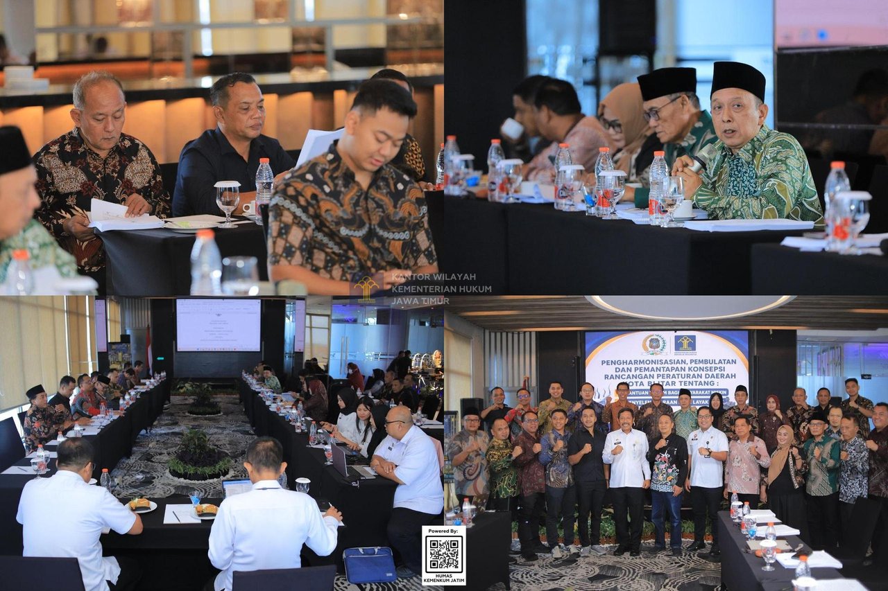 SURABAYA — Kantor Wilayah Kementerian Hukum Jawa Timur (Kanwil Kemenkum Jatim) menegaskan komitmennya dalam memastikan kualitas produk hukum daerah melalui Rapat Pengharmonisasian, Pembulatan, dan Pemantapan Konsepsi Rancangan Peraturan Daerah (Raperda) Kota Blitar yang digelar di Hotel Platinum Tunjungan, Surabaya, Rabu (29/4/2026).