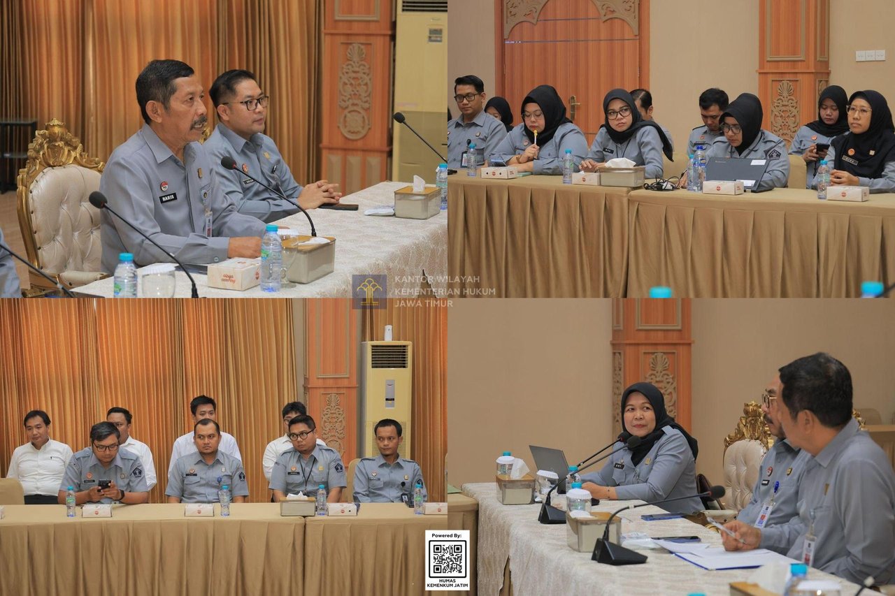 Kegiatan ini dihadiri oleh Kakanwil Kemenkum Jatim Haris Sukamto, Kadiv Yankum Raden Fadjar Widjanarko, Kadiv P3H Soleh Joko Sutopo, perwakilan Biro Perencanaan, serta pegawai yang terlibat sebagai responden dan peserta kegiatan.