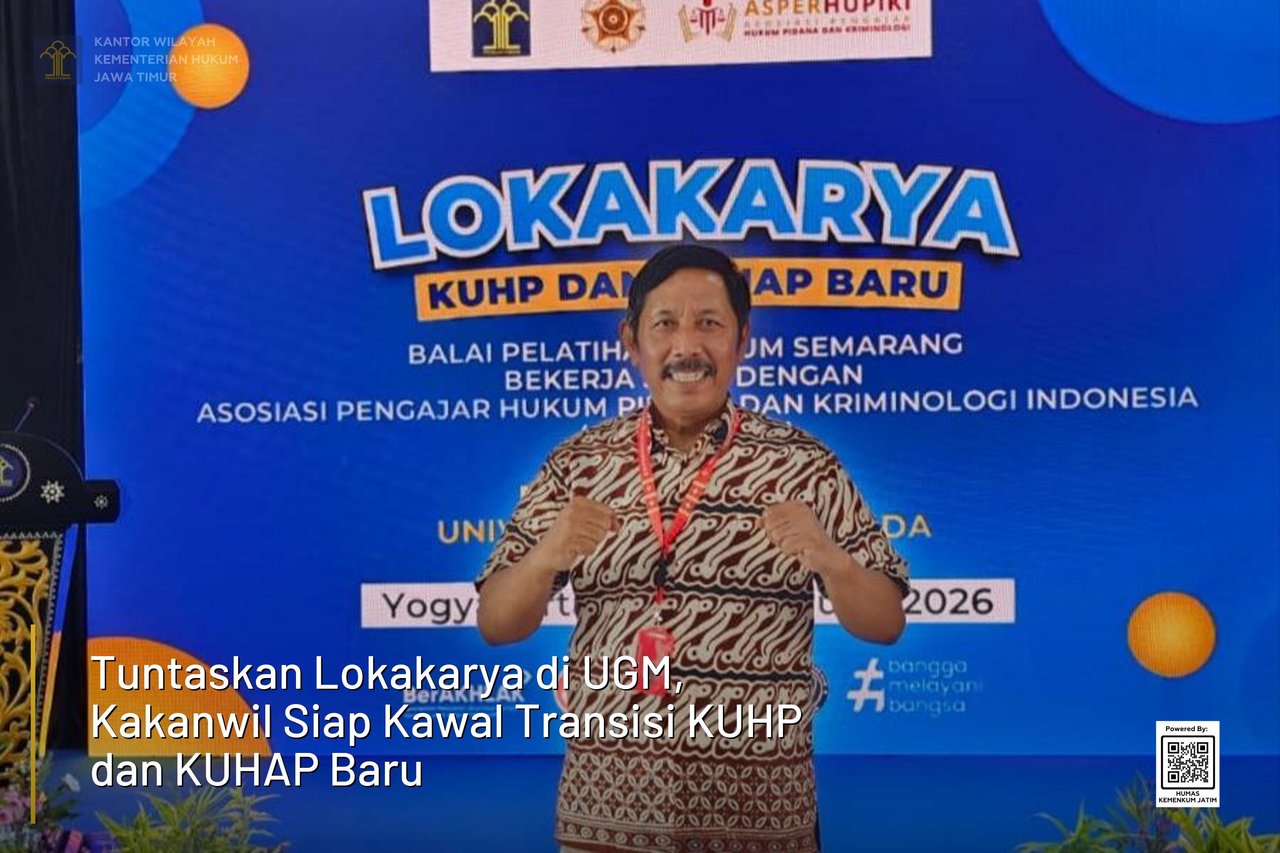 YOGYAKARTA – Kakanwil Kemenkum Jawa Timur, Haris Sukamto, menuntaskan keikutsertaannya dalam Lokakarya KUHP dan KUHAP Baru Tahun 2026 yang digelar di Fakultas Hukum Universitas Gadjah Mada (UGM), Kamis (12/2). Kegiatan ini menjadi momentum krusial dalam finalisasi kesiapan implementasi hukum pidana nasional yang baru.